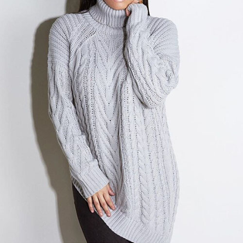 This sweater features solid color style,with long sleeve,turtleneck and a loose silhouette,