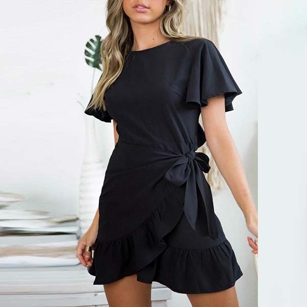 a solid color,the lotus sleeve,irregular ruffle hem and backless design make it look so attractive.