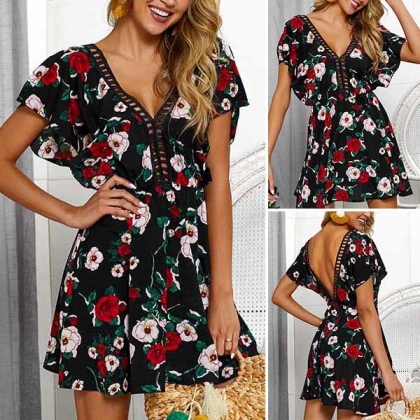 printed pattern,with short sleeve and lotus sleeve design,the backless and v-neck design will make you look flirty.