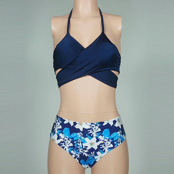 Including a backless crossover halter bikini top and a low-waist printed bikini bottom,this bikini set is just the one