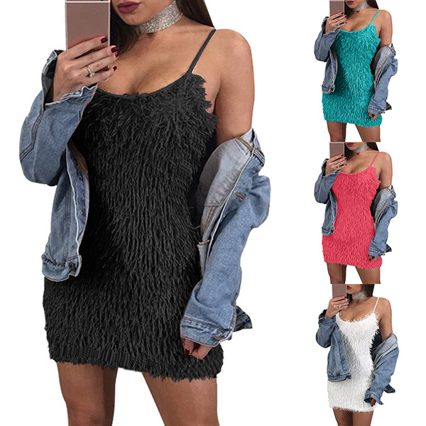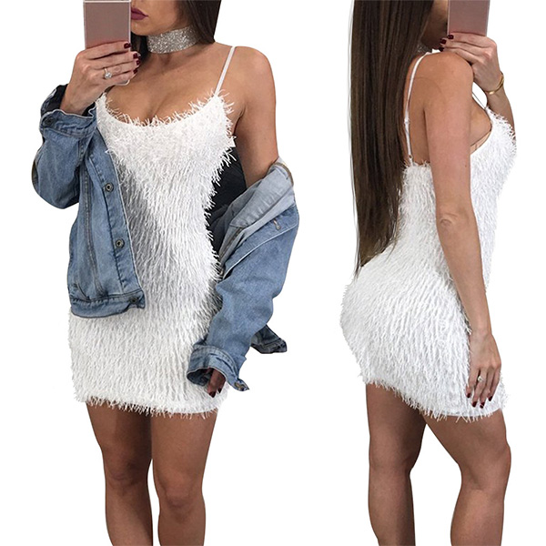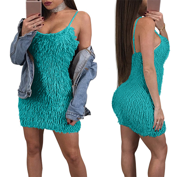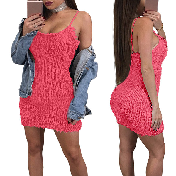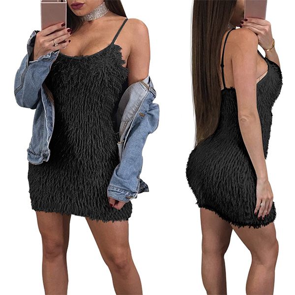 This sling dress is outfitted with backless and a fit silhouette,which can sketch out your seductive curve and sexy style.