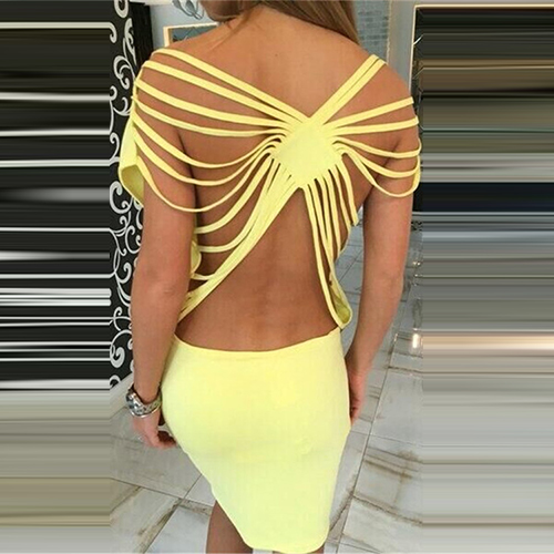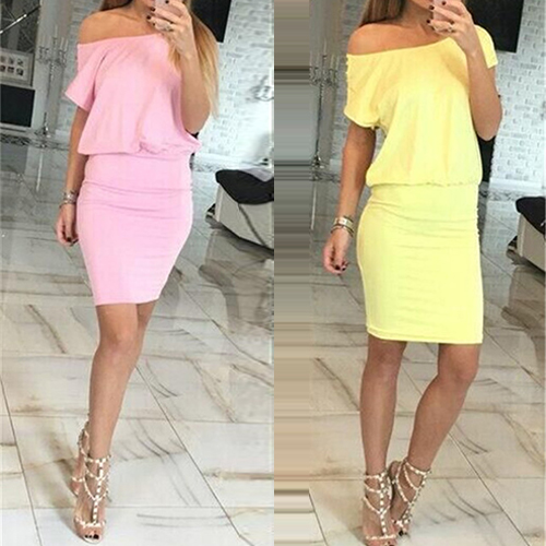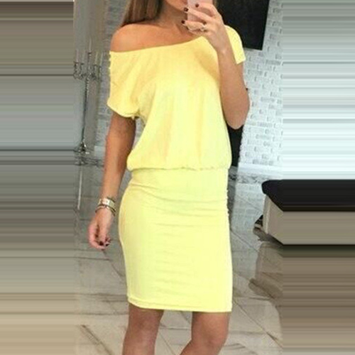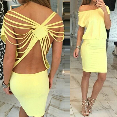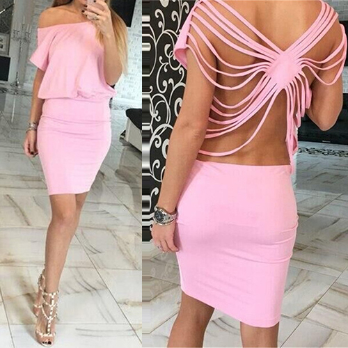 Sexy Backless Oblique Shoulder Solid Color Dress