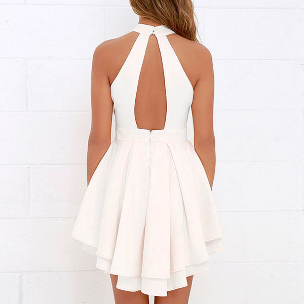 with backless and off-shoulder design can add some alluring and sexy flavor to your look. Its high waist and fluffy hem design