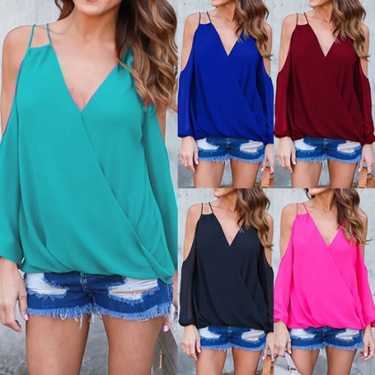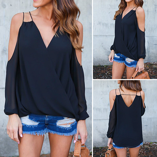 Wow,such a flirty and feminine piece! Only need one glance,you would be attracted by this chiffon top. Solid color style,