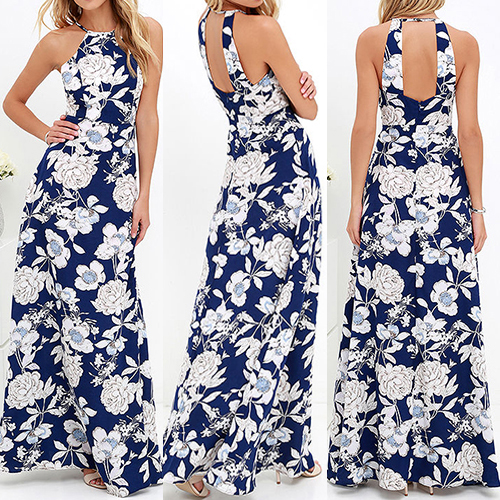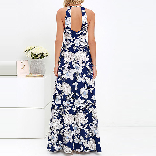 number features a vibrant floral print,with backless,off-shoulder and a maxi length,this dress