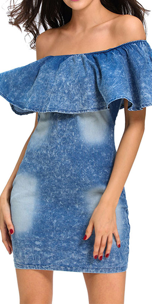 Exude the allure and feminine vibe when you slip into this denim dress. Styled with backless,off-shoulder and ruffle