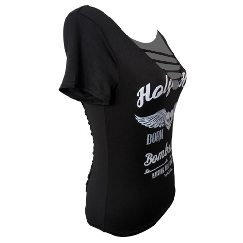 This t-shirt features sexy,chic and cozy elements all in one. Its distinctive details such as chic printed