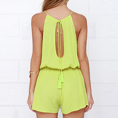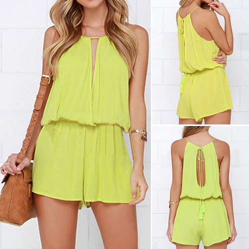 Hey,girls,it is time for you to enjoy you happy summer time with this romper! Solid color style,with backless,