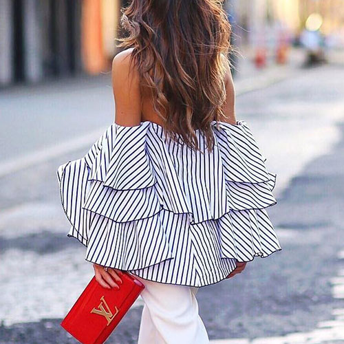 A perfect combination between sultry with a dash of femininity, this straiped blouse is truly a pleasant sight to draw some