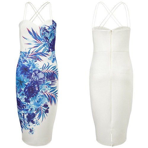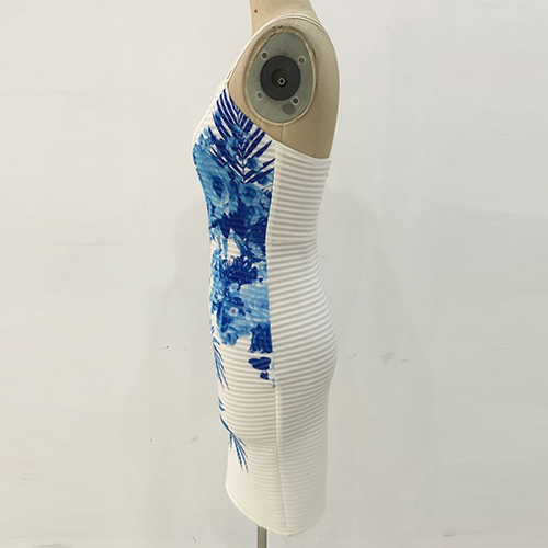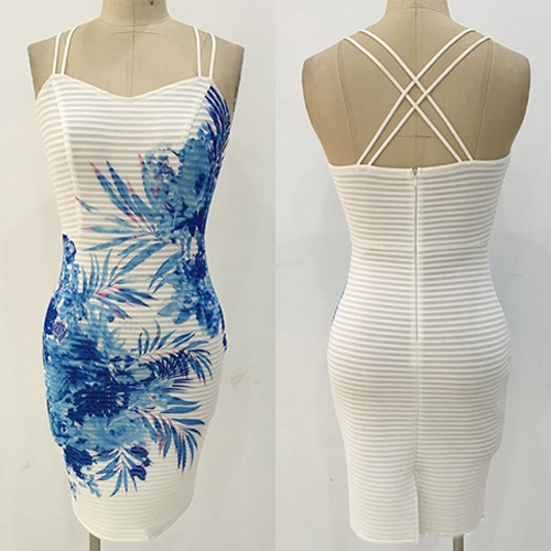 Sling style,with backless,vibrant floral print,back zipper and a fit silhouette,this dress