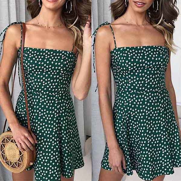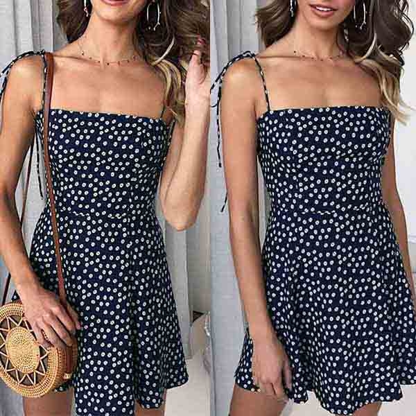 For these sun-soaked summer days,this sling dress is a wise choice. The chic printed details will give you