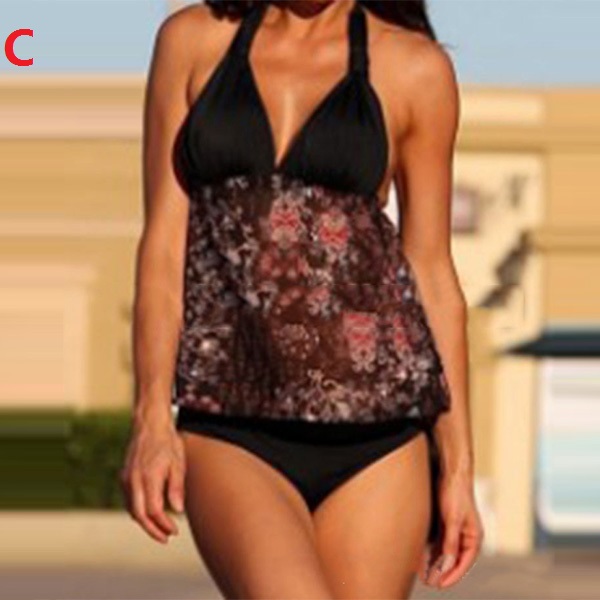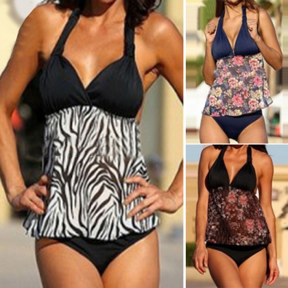 low-waist panty,accompanied with chic and eye-catching printed spliced design,this swimsuit set will give you a