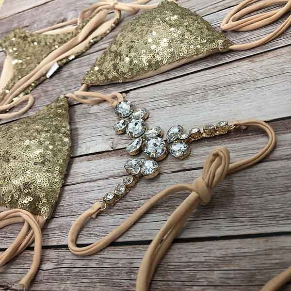 bottom,the sequin and rhinestone details make it look so eye-catching and attractive. Your wise choice for your beach days and tropical getaways.