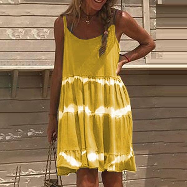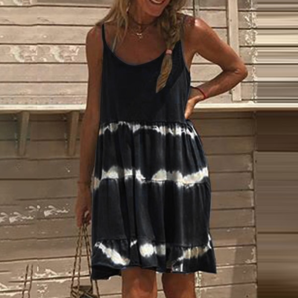 Sling style,the backless and ruffle hem design will enhance your feminine appeal,while the contrast