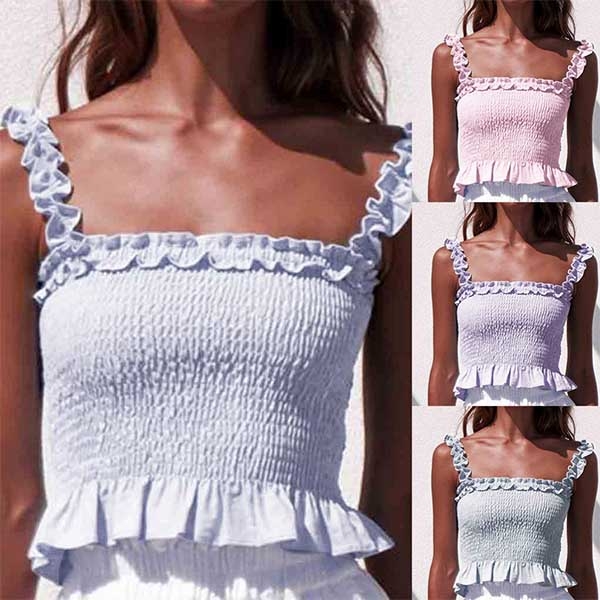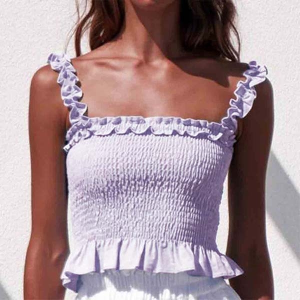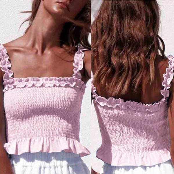Finish a sexy an charming summer look with the help of this crop top. Sling style,the ruffle hem and