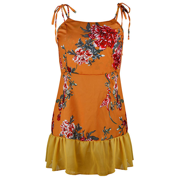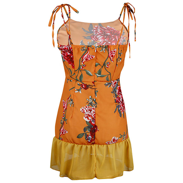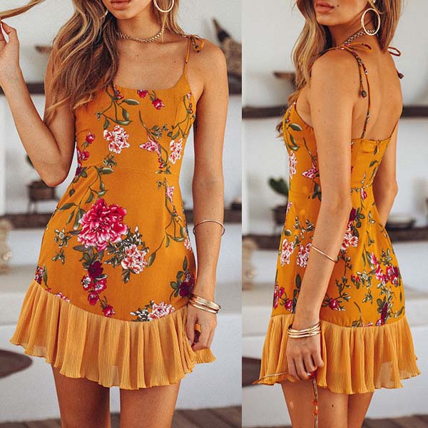 Slip into this dress to greet the sun-soaked summer days. Sling style,the backless and ruffle hem design