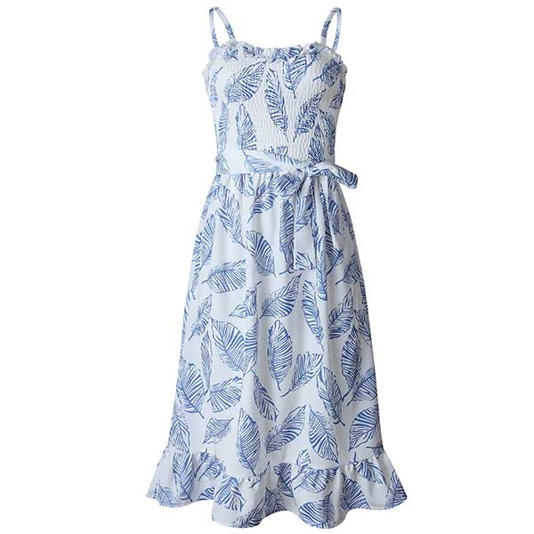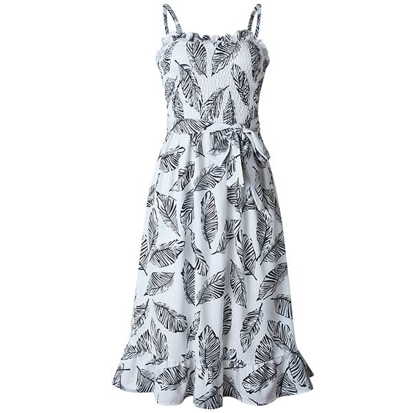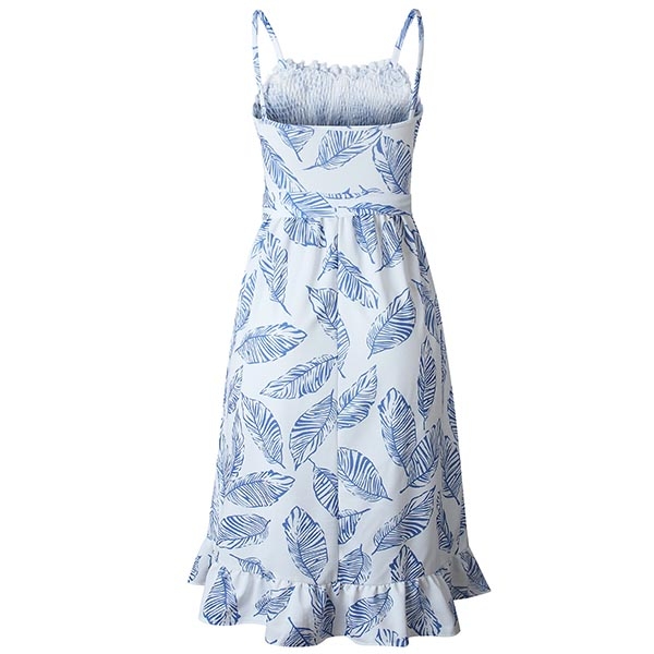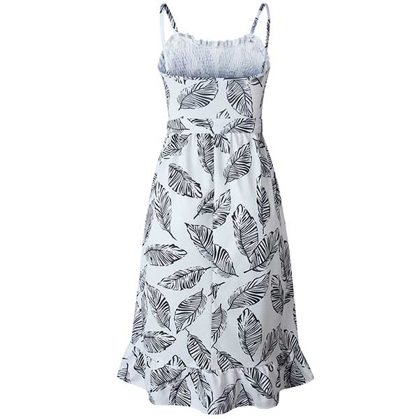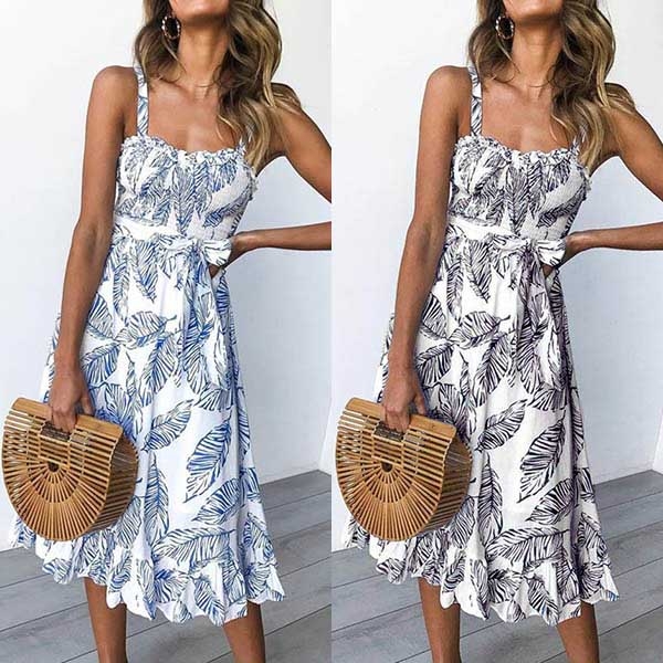 Sling style,the backless and ruffle hem design make it look so sexy and feminine,while the leaf printed