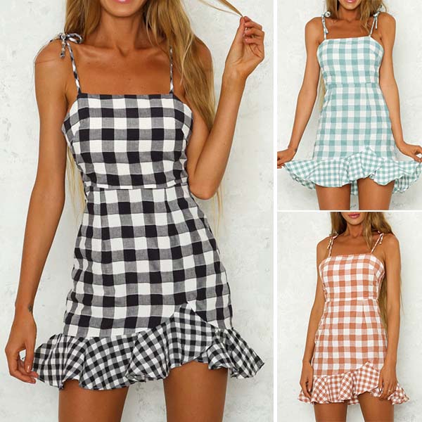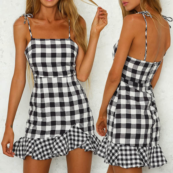 designed with backless,ruffle hem and plaid element,this dress is the key for a stunning style.