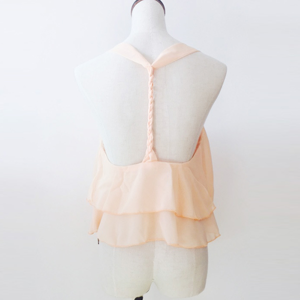 Cozy yet sexy and feminine,that's what this chiffon top can bring for you! Solid color style,designed with backless,