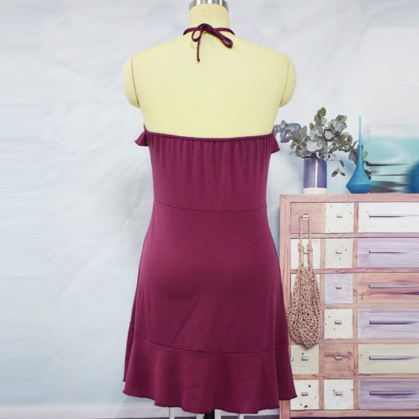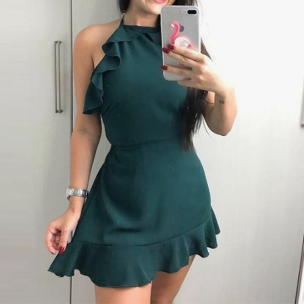 Express your sexy and charming side through this dress. Halter style,with backless and ruffle hem design,