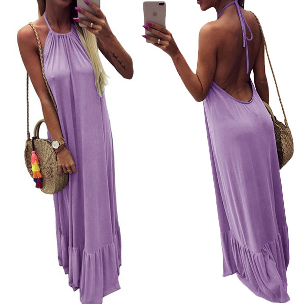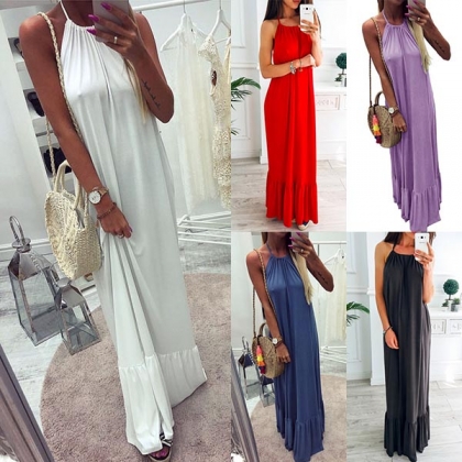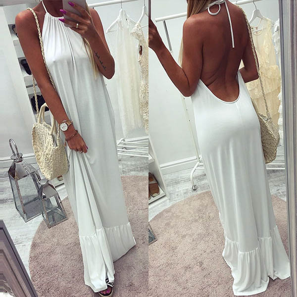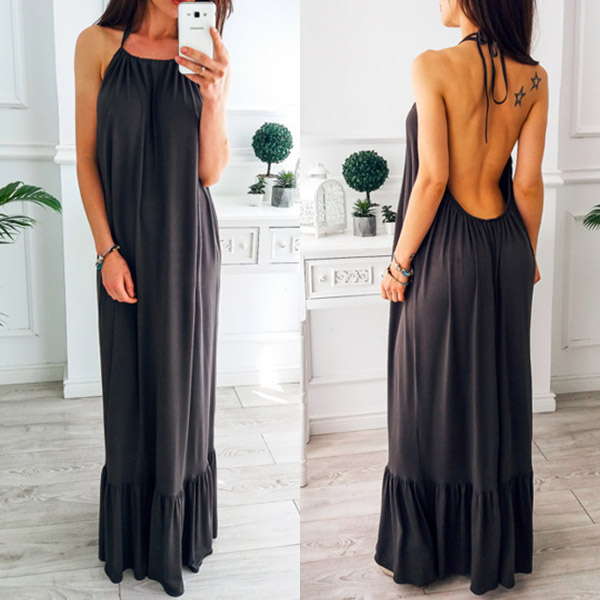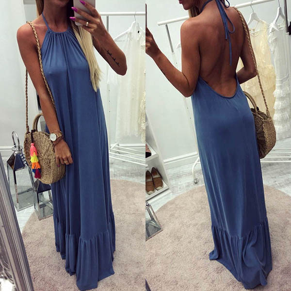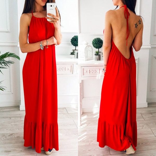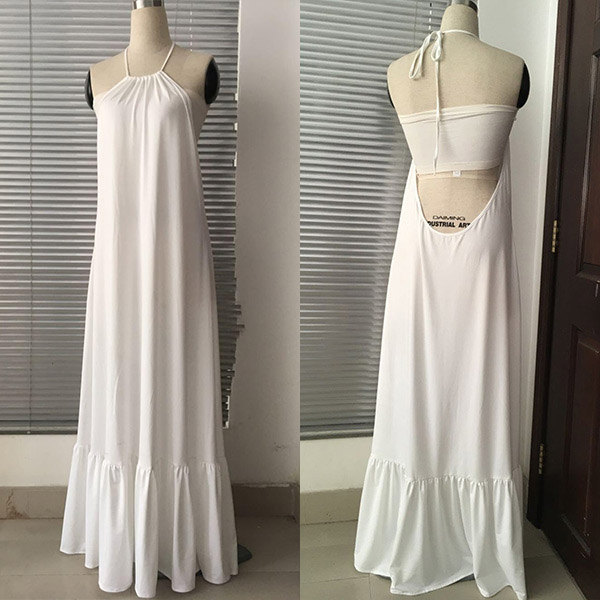 When slipping into this dress,you can easily win more eyes. Halter style,with backless and ruffle hem design,