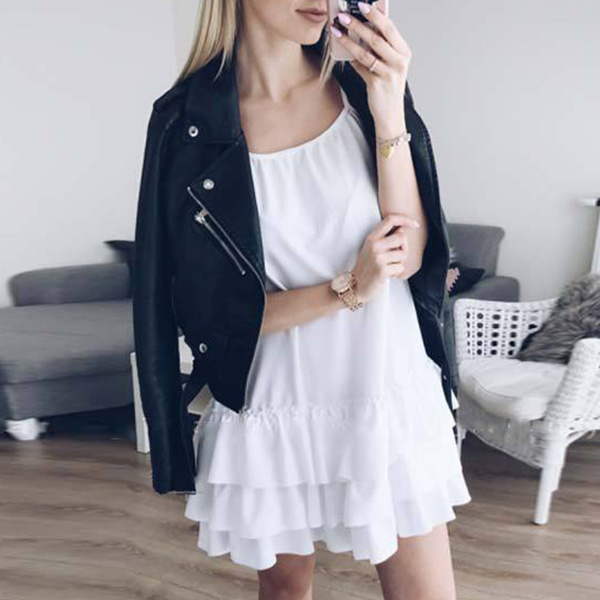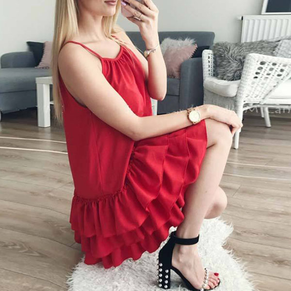 the backless and ruffle hem design make this piece look more attractive. You can also match with