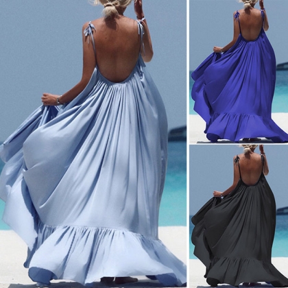 with backless and ruffle hem design,sexy and charming. Solid color tone design makes it look simple yet