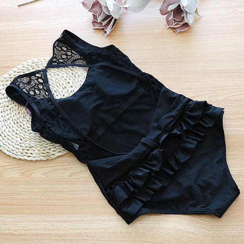 Make a splash at the beach with this super seductive swimsuit. One-piece style,its backless,lace spliced