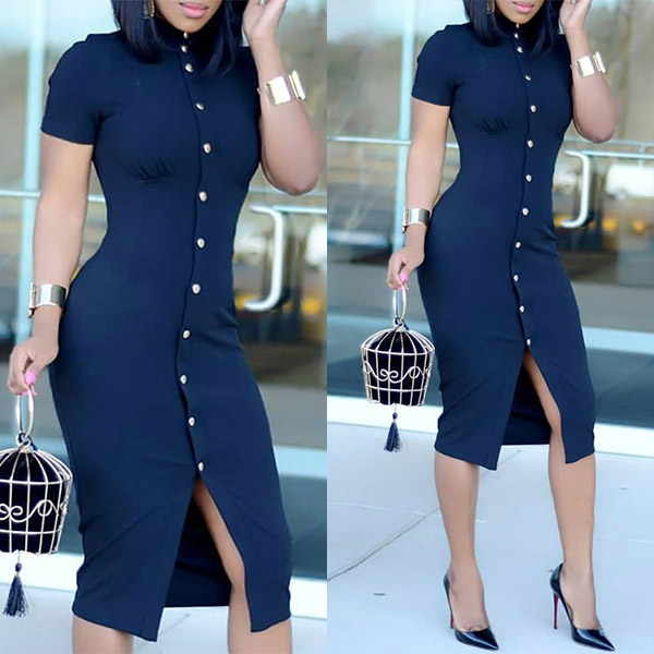 solid color,finished with short sleeve,single-breasted and a fit silhouette,this dress also can demonstrate