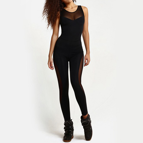 jumpsuit. Its backless and see-through gauze spliced design makes it look so sexy and charming,