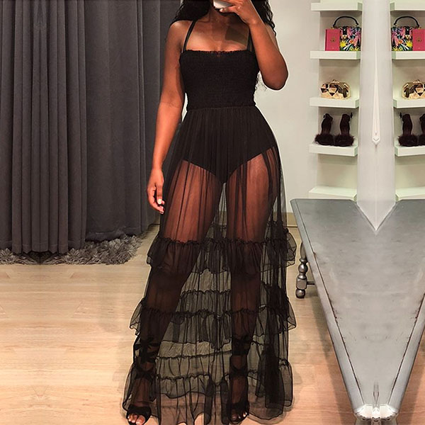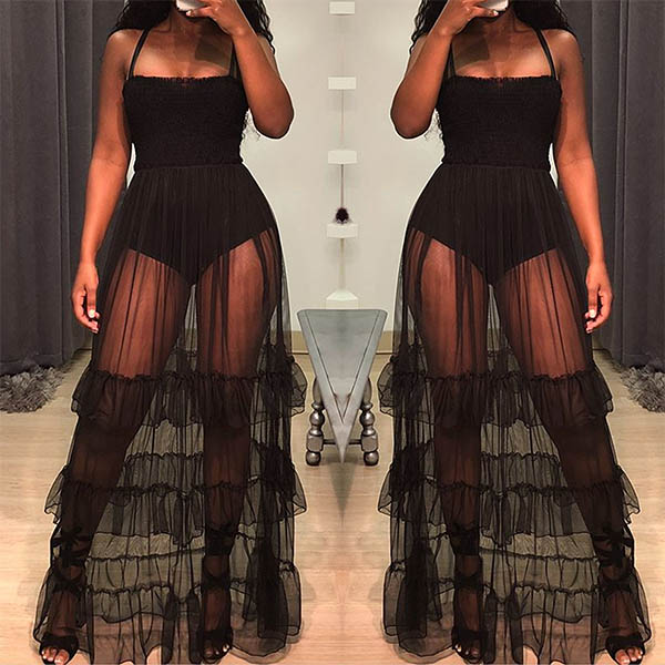see-through gauze spliced design make this piece look so sultry and sexy. I promise no one can be more