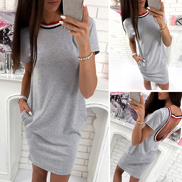 When it comes to a cozy yet sexy style,you can trust in this short sleeve dress. Its backless and contrast color edge