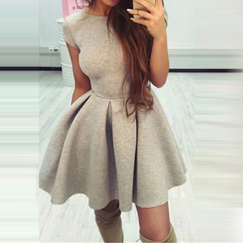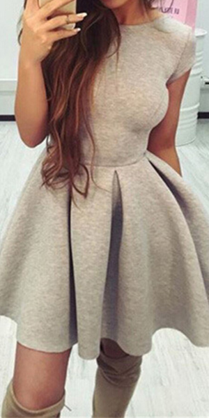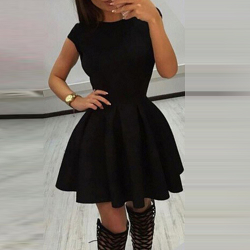 parties, and this pretty number will do exactly that! Solid color style,with short sleeve,round neck and high waist design,