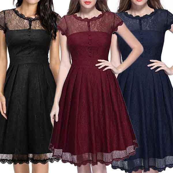 Emulate that independent spirit at your date night with this lace dress and let it enhance your feminine side. Solid color style,