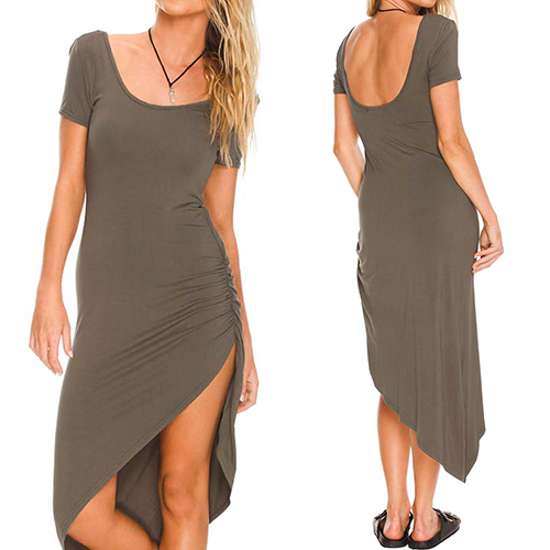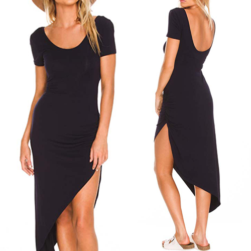 This short sleeve dress features a solid color style,its backless and irregular hem design makes it