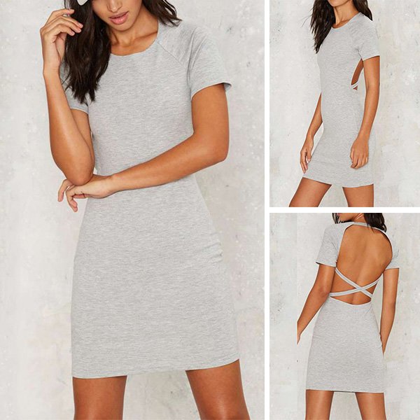 designed with short sleeve,round neck,backless and a super fit silhouette,this dress is the perfect muse for