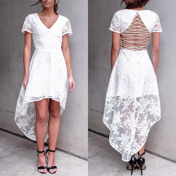 The backless and v-neck design can exude your feminine appeal,while the high-low hem design makes
