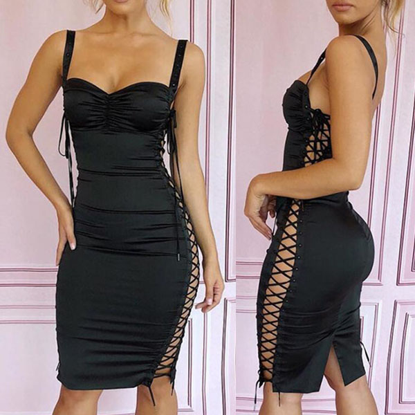This dress comes with a mysterious yet flattering black tone,the backless and hollow out lace-up design