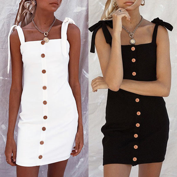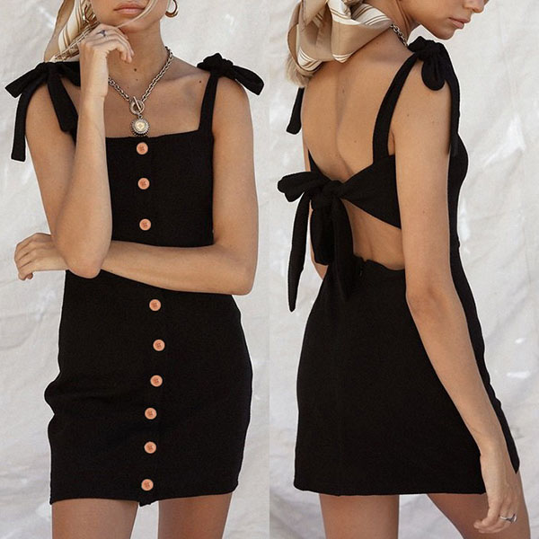 Slip into this dress to exude your charming feminine appeal. Sling style,designed with backless,single-breasted