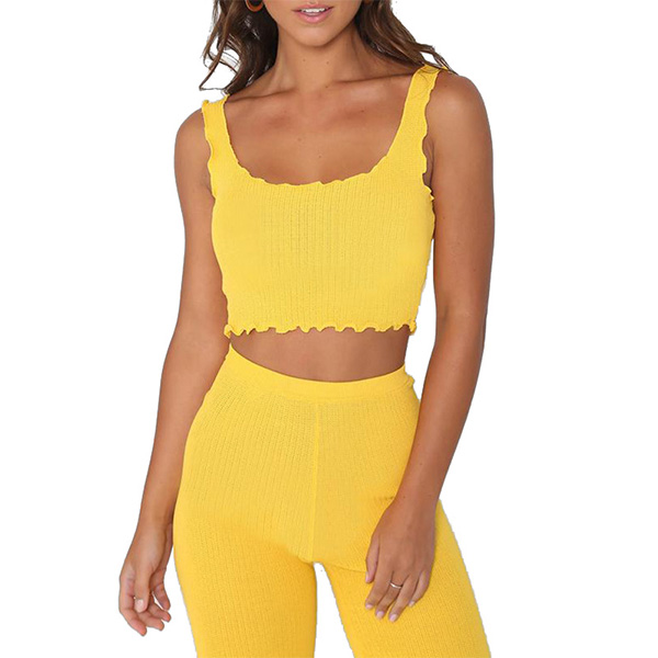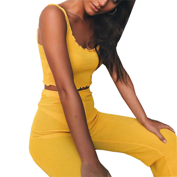 Solid color style,including a backless sleeveless crop top and a high waist pants,this two-piece set can help