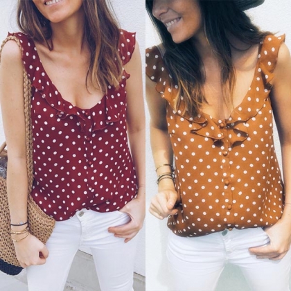 For these sun-soaked weekends,this sleeveless top is your perfect partner. The dots printed design