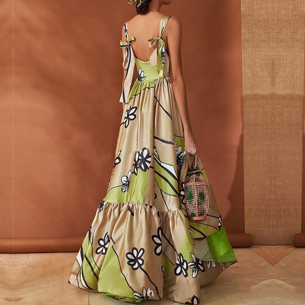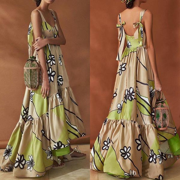 You can enhance your feminine appeal by donning this dress. Boasts chic printed pattern,the backless