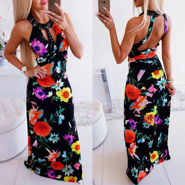 more attention. Features eye-catching printed details,with sleeveless,backless and a maxi length,this