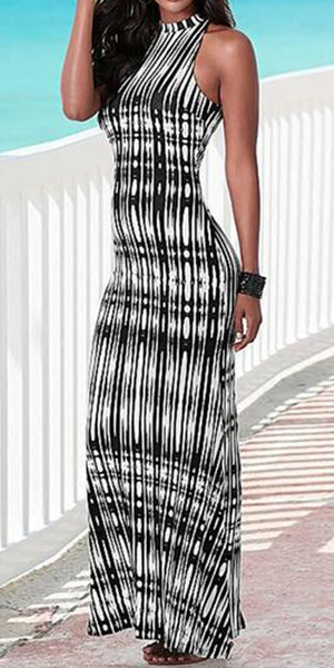 this one! Features chic and eye-catching printed pattern,with sleeveless,backless and a maxi