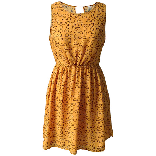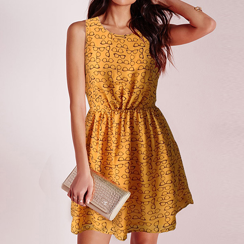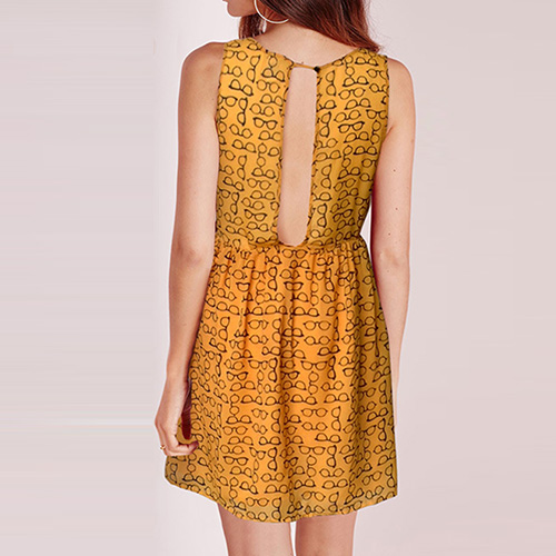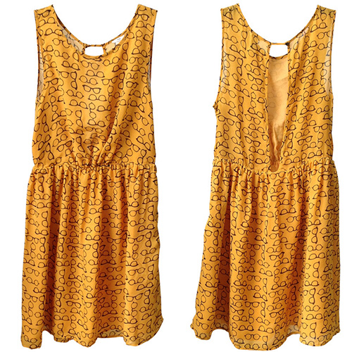printed dress? Features chic printed style,with sleeveless,round neck,backless and an elastic