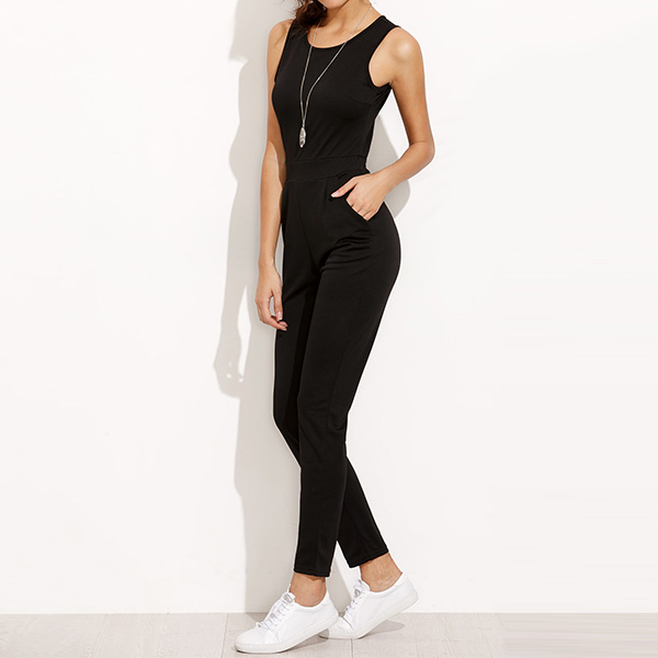 jumpsuit! Solid color style,designed with sleeveless,round neck,high waist and a fit silhouette,elegant,refined and charming.