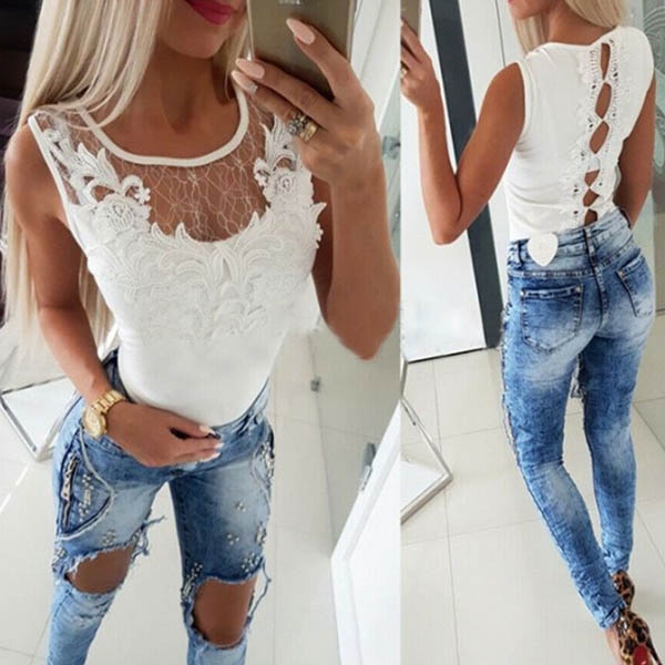 Hey,girls,you can easily win more eyes when you don this piece. The backless and lace spliced