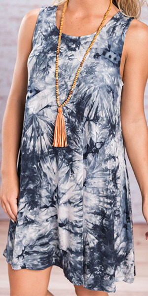 Features a chic printed pattern,with sleeveless,round neck,a loose silhouette and a cutout