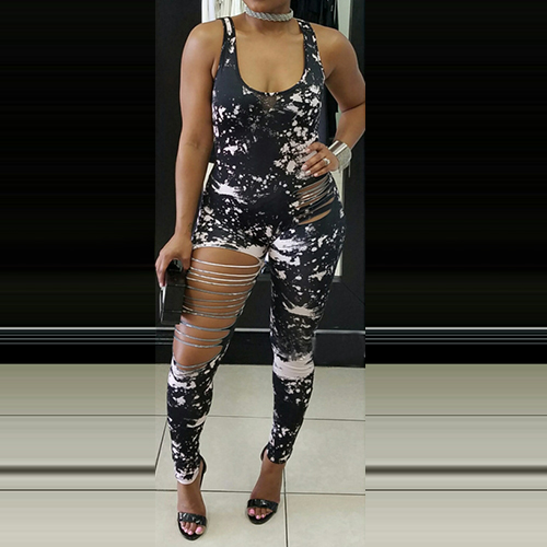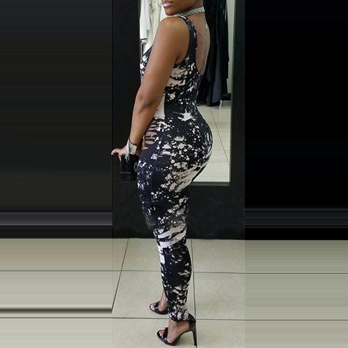 chic printed pattern,with sleeveless,round neck and a fit silhouette,its backless and ripped details make this
