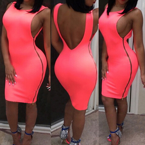 Sexy and a little bit sassy, this classic cocktail dress features a solid color,its backless design